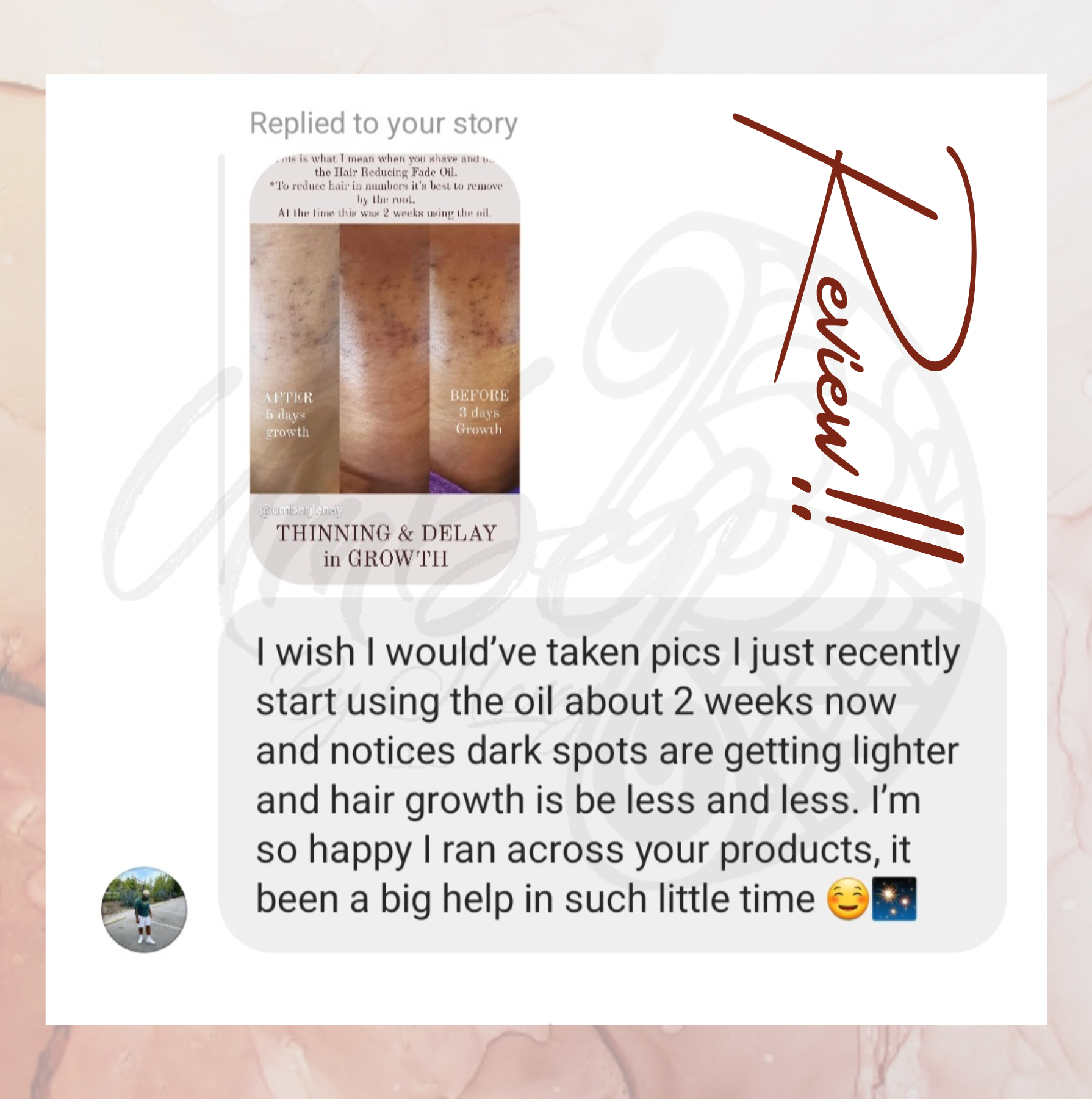 I’ve been dealing with excessive hair growth since 9th grade (PCOS ) and I’m 29 now but I’m so happy I came across this hair reducing fade oil it’s a slow process but if your consistent and determined you will most definitely see results within the 1st 2 weeks. I literally started tearing up because I’m known for always having ingrowns and they’re very painful with long strains of hair. When I tell you it’s been reduced by sooo much my face doesn’t feel rough or look bumpy either. Thank you so much jasmine ! Thank you for taking the time out your day to help ladies with PCOS! It’s definitely worth it 😌😌❣️and that small oil bottle has a perfect roller installed like you said ! “ alittle oil goes a LONG way like sis where you been since I was in 9th grade ! lol