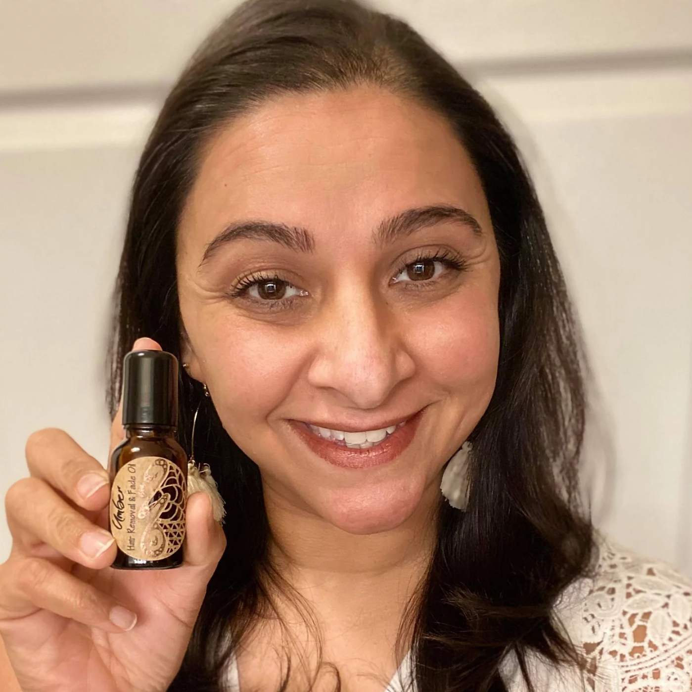This product has been amazing. I can’t tell you what’s done for my confidence. It comes in an amazing glass bottle with a roller!! Application is seamless and easy. No mess and no wasting product! Not only does this product help remove hair on your face Overtime with consistent use but it also removes dark spots!